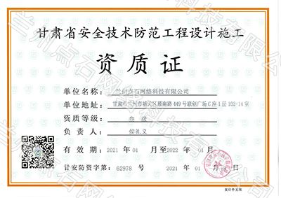 甘肅省安全技術(shù)防范工程設(shè)計施工資質(zhì)證副本