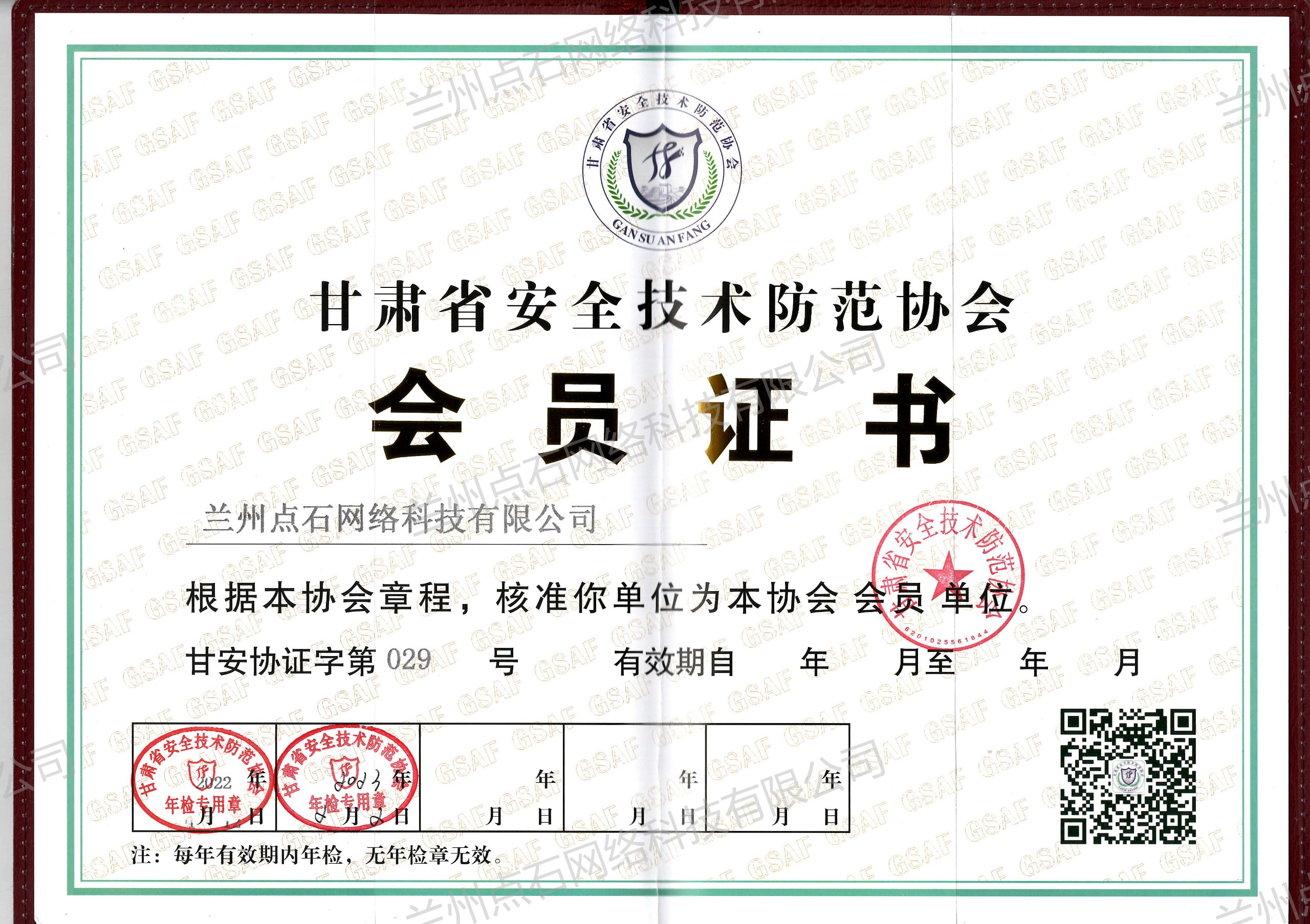 甘肅省安全技術(shù)防范協(xié)會會員證書